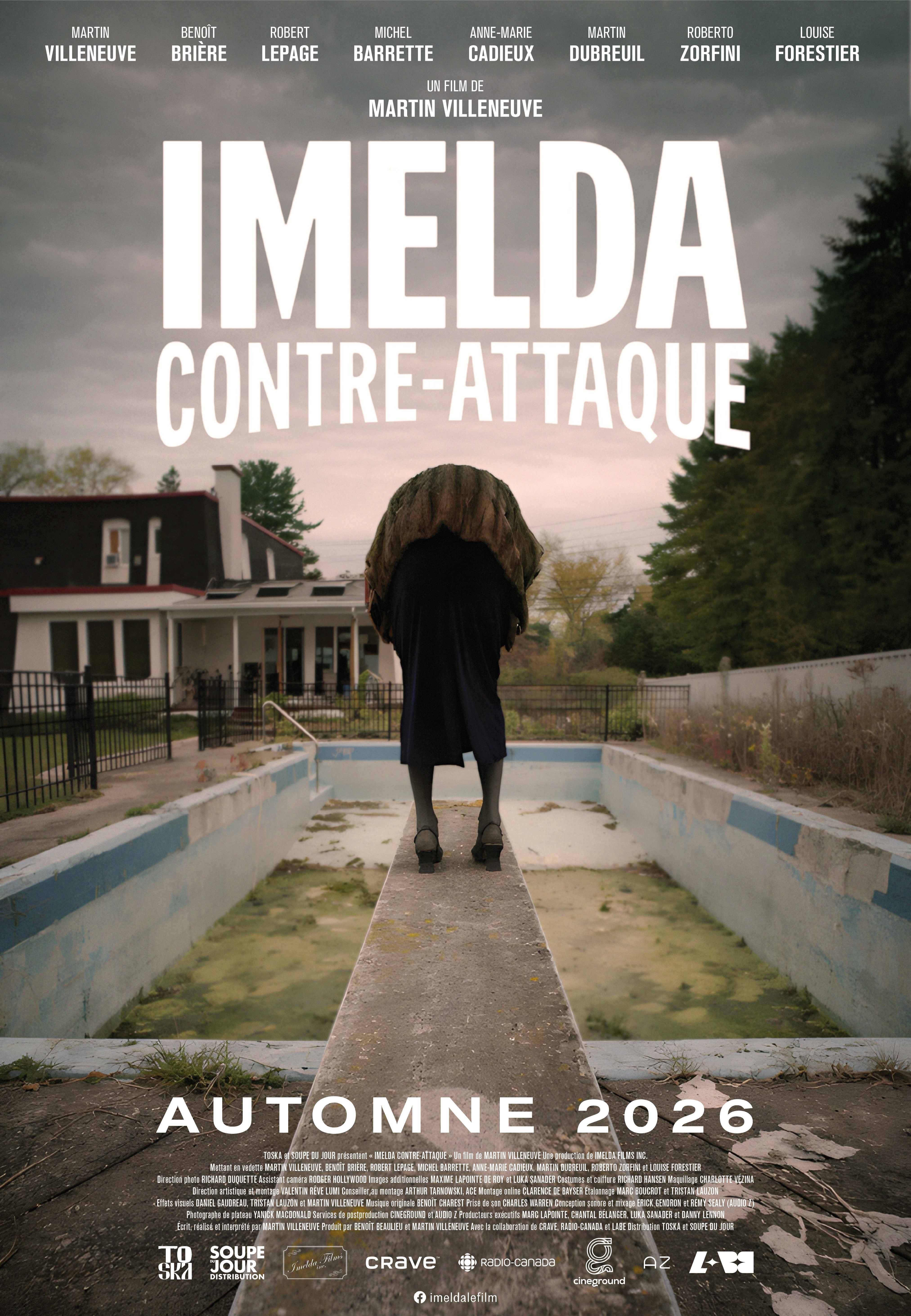 Fort du succès remporté par le premier opus, Imelda contre-attaque prendra l’affiche partout au Québec à l’automne 2026. Il s’agit du troisième long métrage du cinéaste Martin Villeneuve, après Mars et Avril (2012) et Les 12 travaux d’Imelda (2022). Il a aussi réalisé la série animée Red Ketchup (2023).